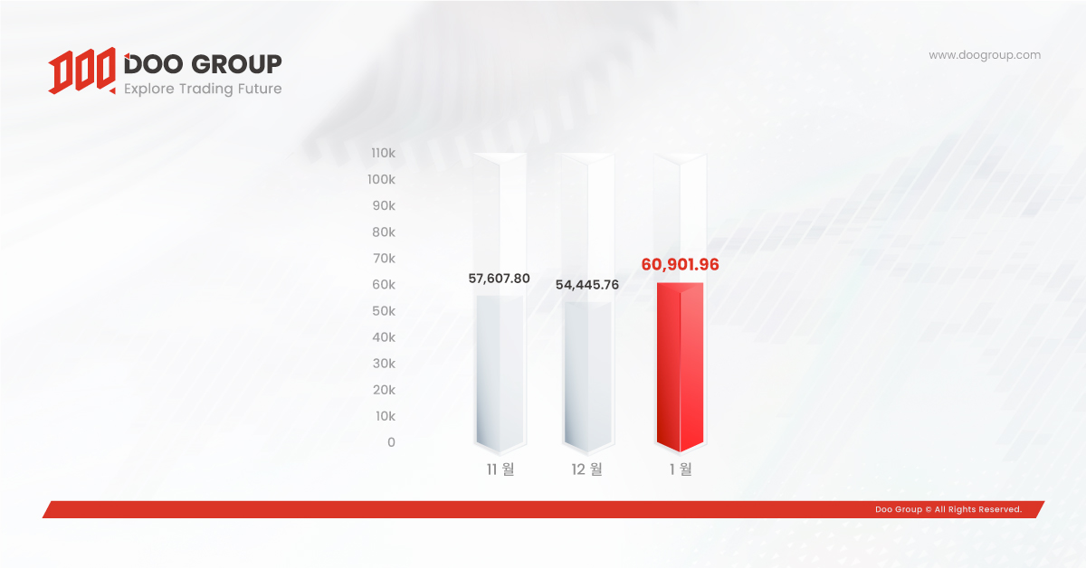 • 1월 총 거래량은 609.0억 달러입니다.
