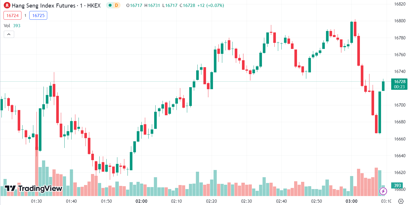 • 恒生指数涨 1.64%,收报 16,782.71 点