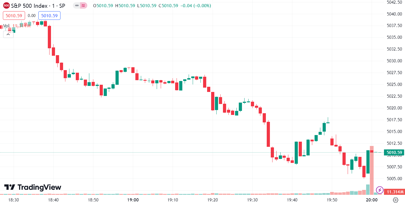 • 标普 500 指数涨 43.37 点, 涨幅为 0.87%,报 5,010.60 点