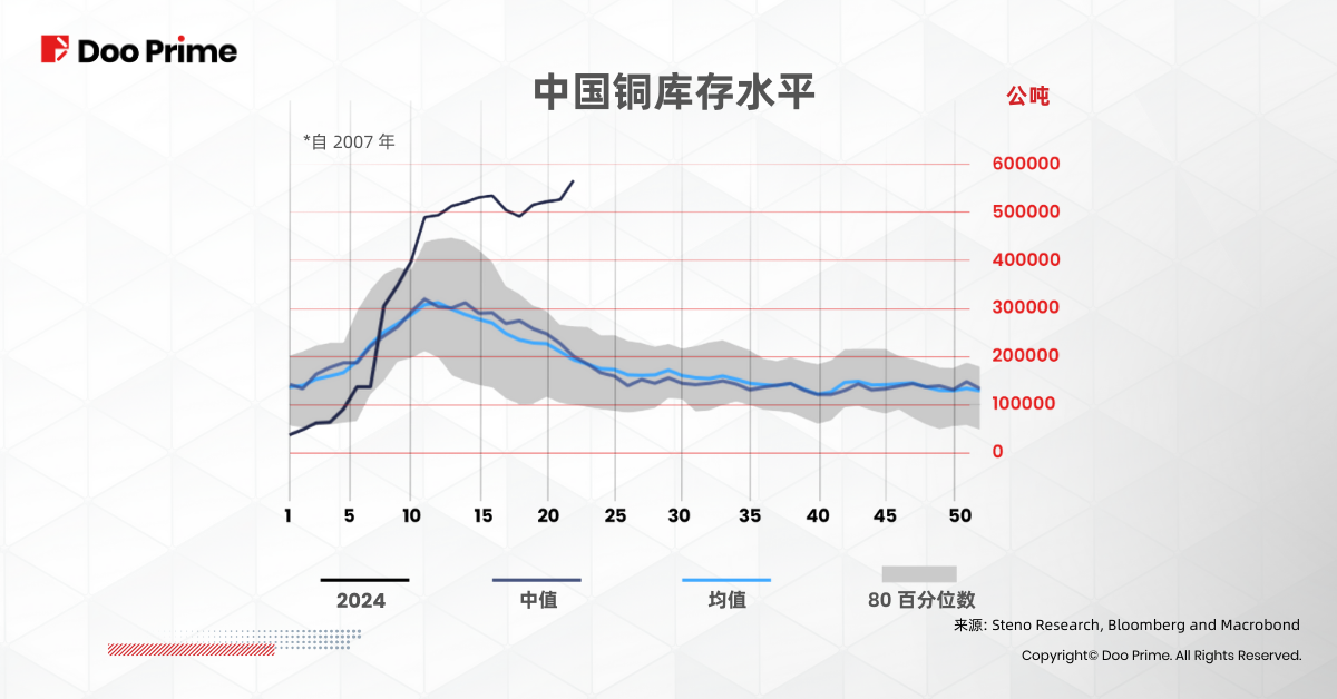 • 通胀压力:通胀顽固,投资者寻求铜等有形资产来对冲货币贬值的风险,使铜成为更具吸引力的投资选择。