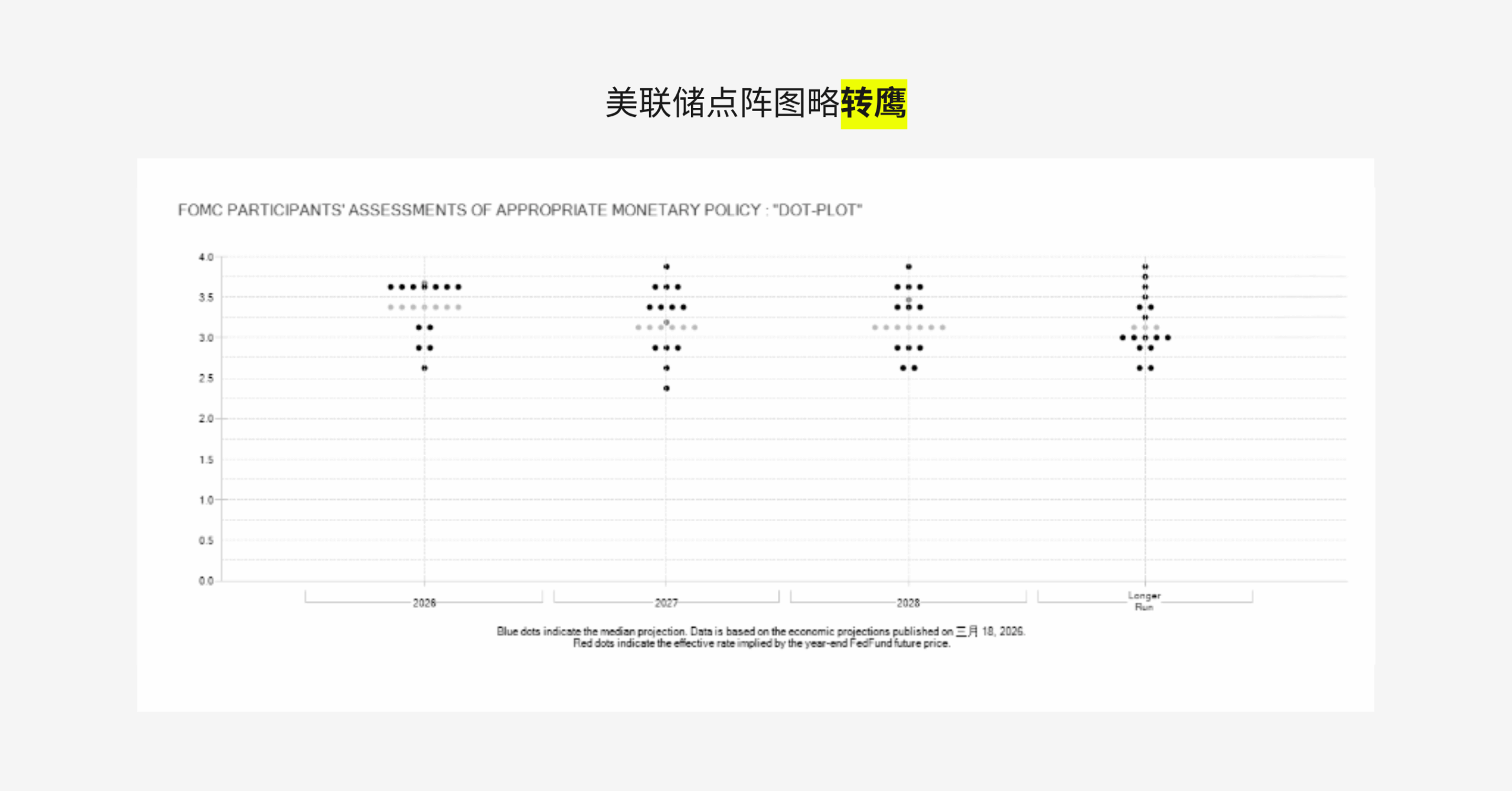 正因如此,市场普遍押注美联储将加息。但当前市场对通胀的担忧可能有些过度。从美联储点阵图来看,立场虽略转鹰派,但仍保留了年内降息一次的指引。美联储需平衡通胀、就业与经济增长,当前联邦基金利率已处于高位,进一步加息空间有限。在就业疲软的背景下继续加息,恐将对经济造成更大压力。