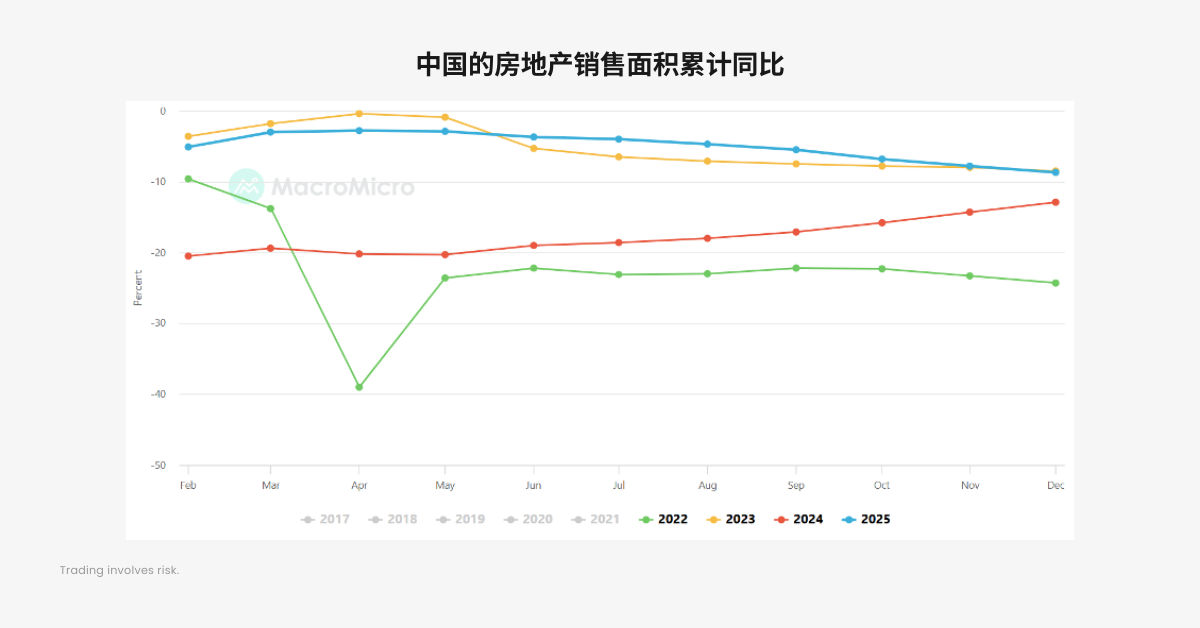 但是,中国的商品房销售面积累计同比,依然在不断下降。2025 年,中国的房地产市场并没有复苏,而是还在探底。幸运的是中国这几年对科技的投入与重视程度前所未有,光伏、汽车乃至现在的 AI 开始成为中国经济的支撑,但转型并非一朝一夕,传统的支柱产业房地产一直在拖累经济,至少可以断定的是,2026 年上半年,和房地产有关的行业并不会有太大机会,比如家电、装修、水泥等。