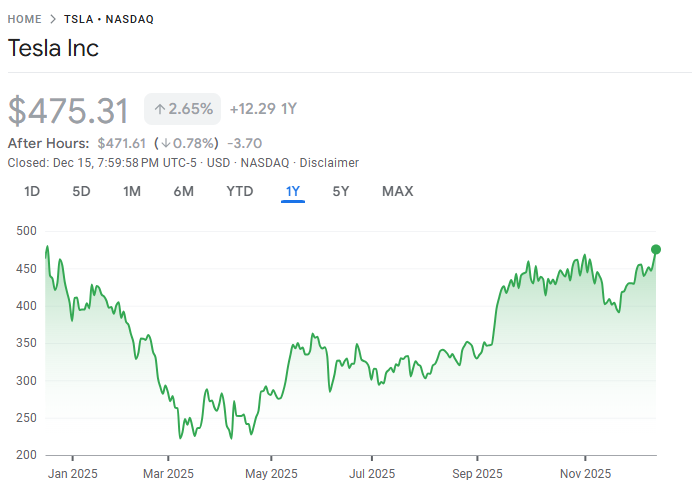 Tesla 测试无人驾驶 Robotaxi,股价创近一年新高