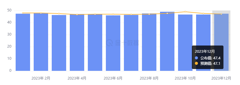 同日,ISM 公布的数据显示,美国 12 月 ISM 制造业 PMI 指数 47.4,略好于预期的 47.1 与前值 46.7。