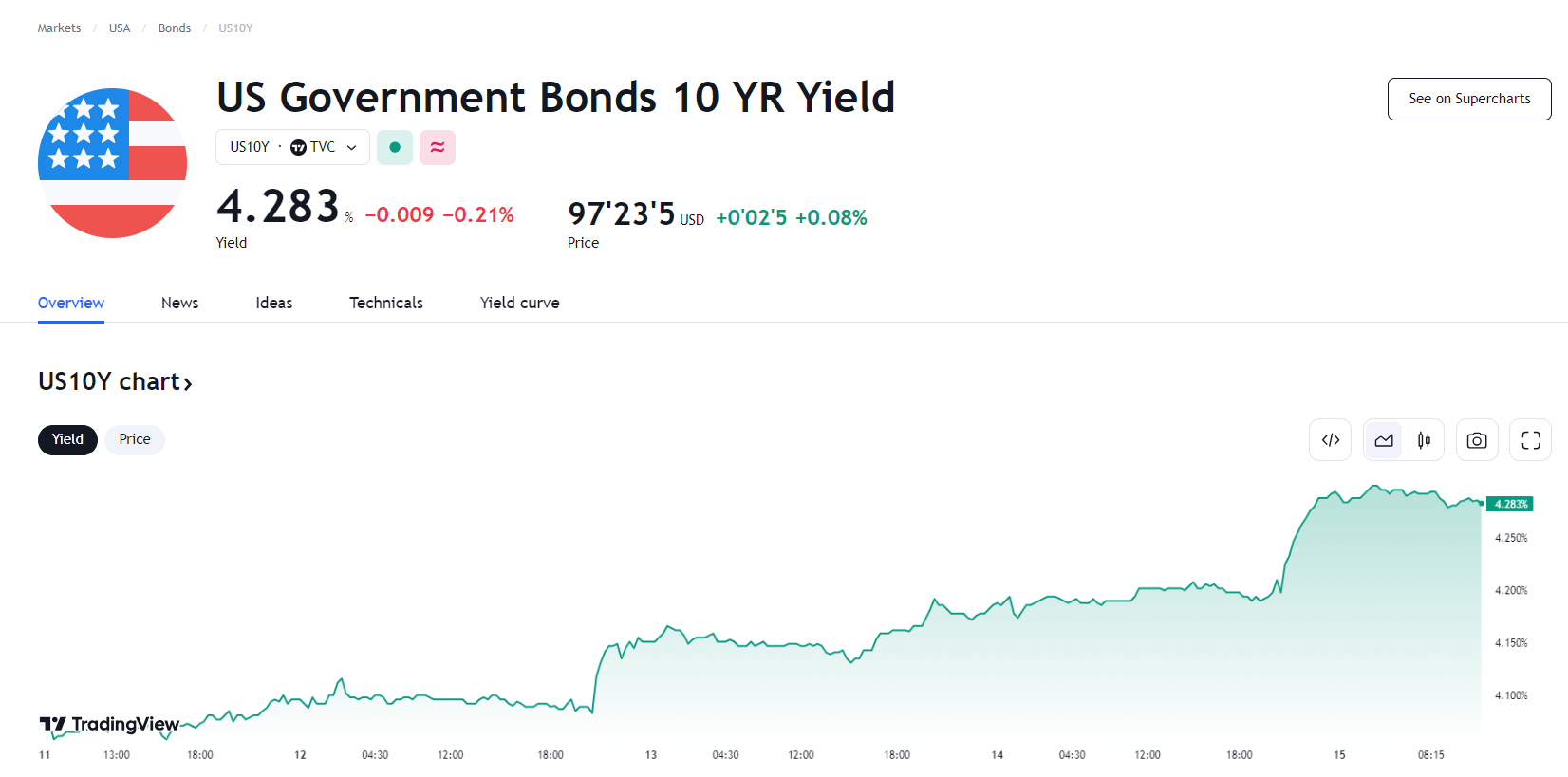截止纽约时段尾盘,2 年期美债收益率涨 5.9 个基点,报4.708%;3 年期美债收益率涨 8.6 个基点,报 4.476%;5 年期美债收益率涨 9.2 个基点,报 4.296%;10 年期美债收益率涨 10.4 个基点,报 4.297%;30 年期美债收益率涨 9.4 个基点,报 4.437%。