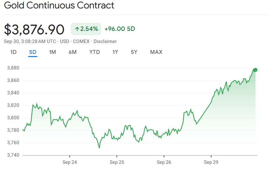 9 月 29 日至 30 日,国际金价再度强势上扬,盘中一度升 1.4%,最高触及 3,812 美元/盎司,成功突破上周二(23 日)所创历史新高,延续六周连涨走势。