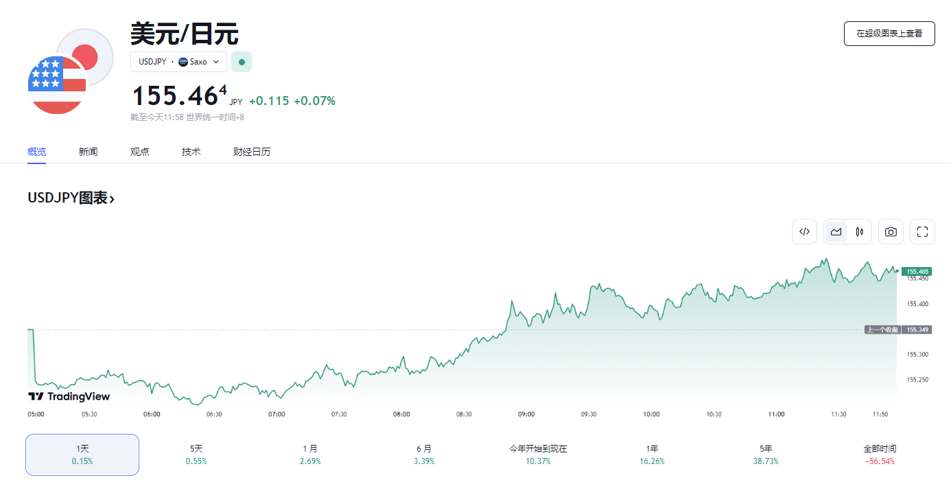 美元兑日元跌破 155 关口,创 34 年新低