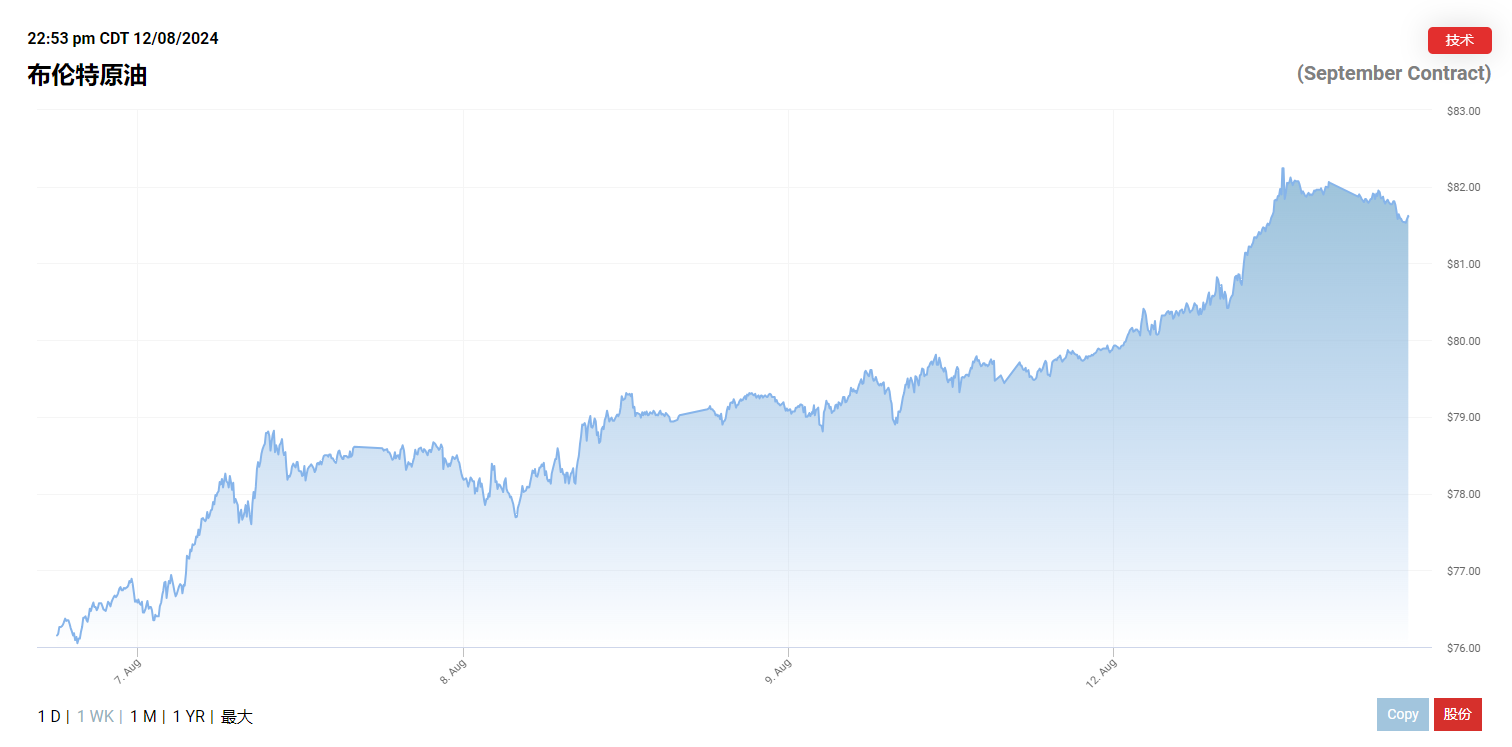 全球基准布伦特原油期货收于每桶 82.30 美元,上涨 2.64 美元,涨幅3.3%,创下今年以来最大单日涨幅;美国 WTI 原油期货收于每桶 80.06 美元,上涨 3.22 美元,涨幅 4.2%。