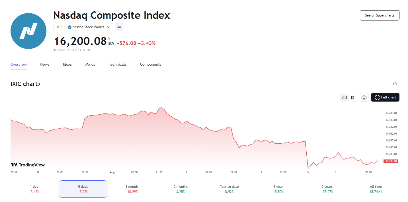 股市遇“黑色星期一”,纳指跌逾 6%