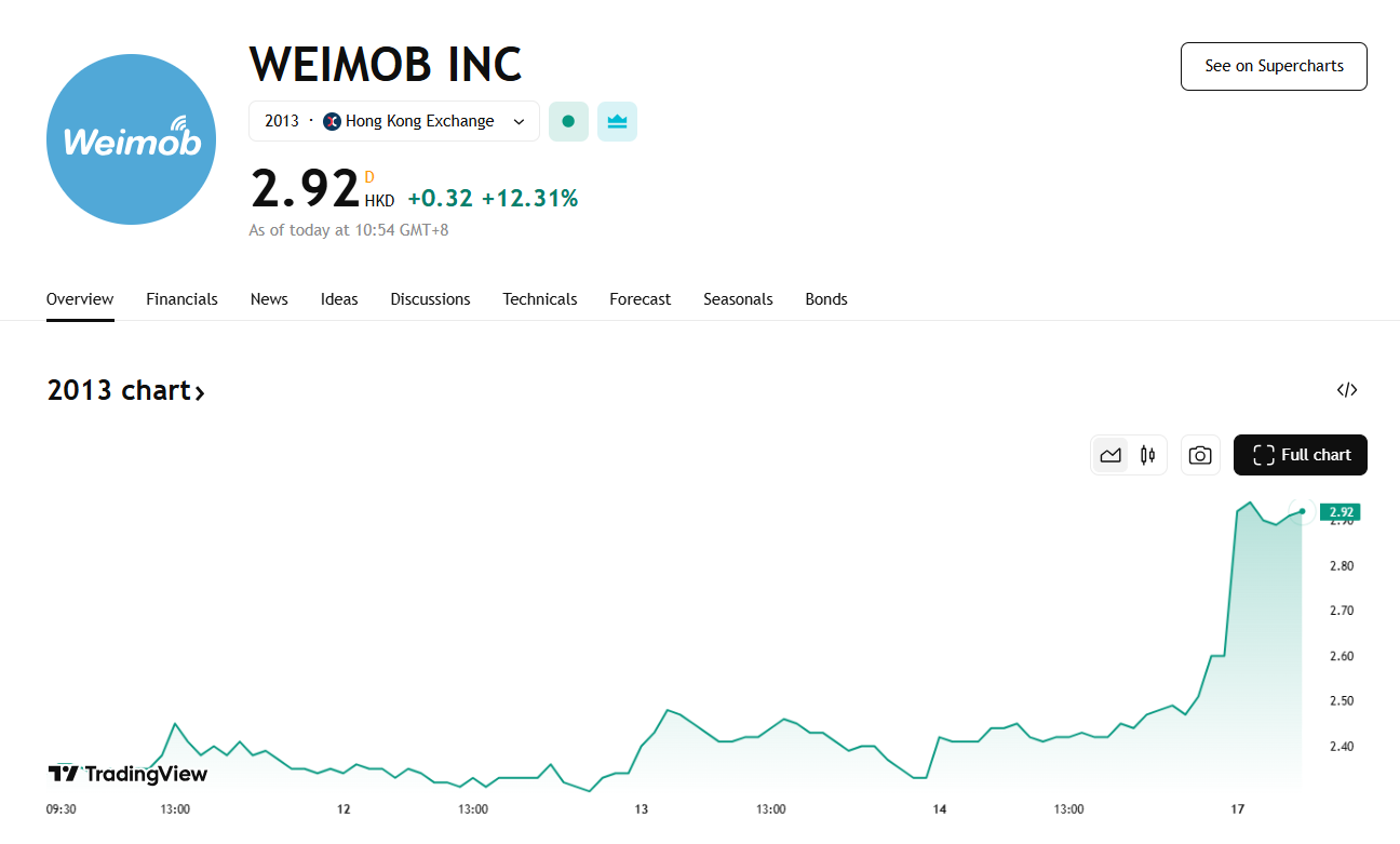 17 日,腾讯控股(HK:0700)跳空高开,一度大升超 7%,创 2021 年 7 月 20 日以来新高;微盟集团(HK:2013)最高涨近 20%,截至发稿,涨 12.69%,报 2.93 港元。