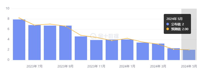 数据显示,英国 5 月 CPI 环比涨幅为 0.3%,与前值持平;剔除能源、食品、酒精和烟草的核心通胀率从 4 月份的 3.9% 降至 3.5%,与预期一致;而英国央行一直密切关注的服务业通胀年率则从 5.9% 降至 5.7%。