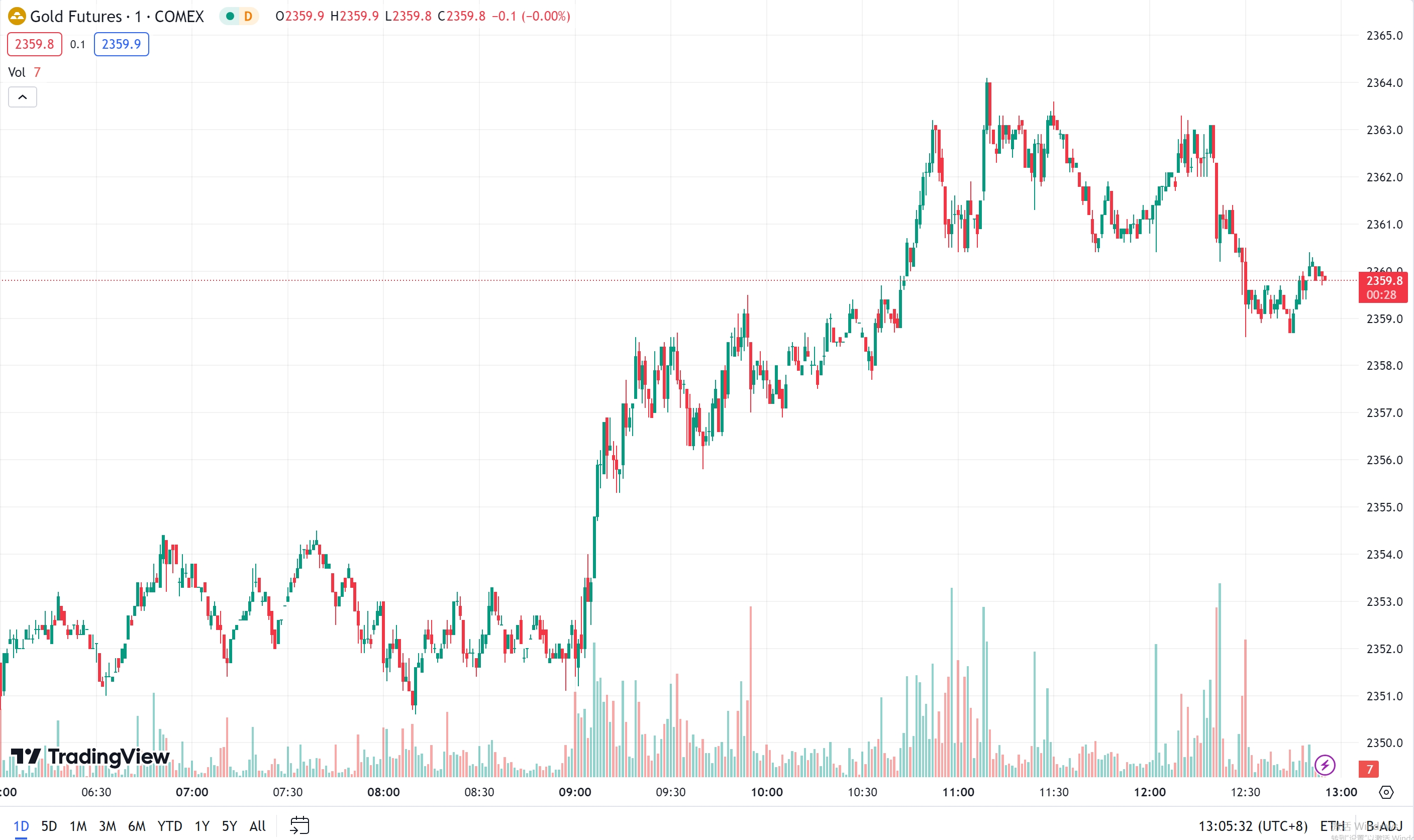国际金价暂缓升势,现货黄金一度失守 2320 美元/盎司,COMEX 期金一度失守 2340 美元/盎司。