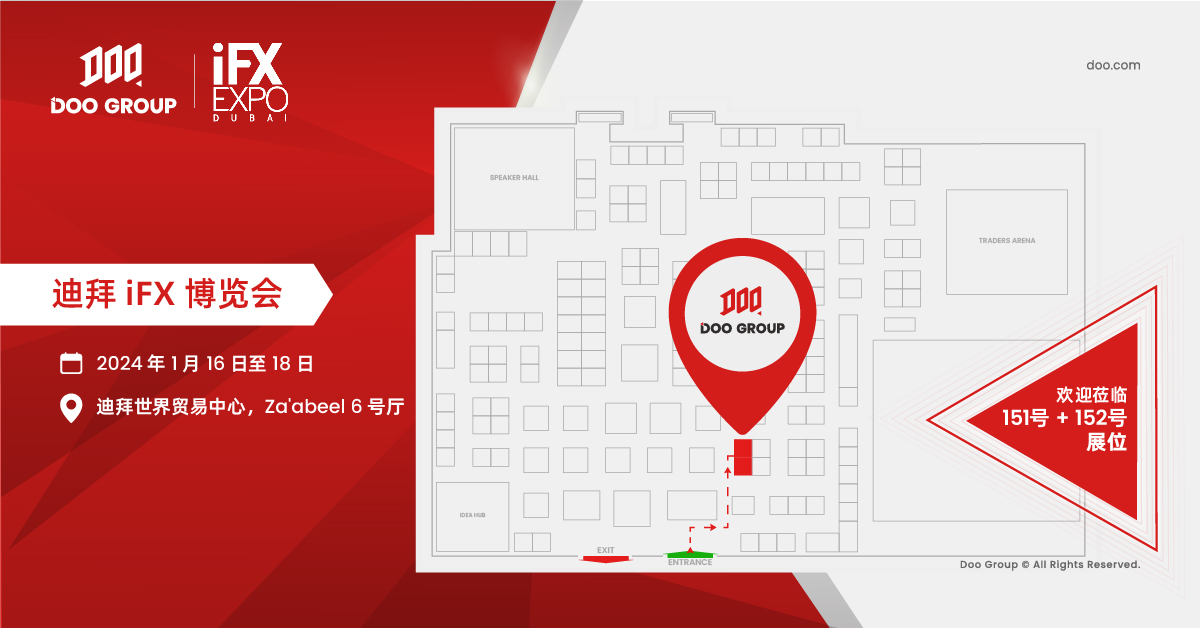 Doo Group 期待在迪拜 iFX 博览会 151 号和 152 号双展位与您相遇,同时,如您想与 Doo Group 参展团队会面深入交流,可发送邮件至 marketing@doogroup.com 联系我们,2024 不见不散。