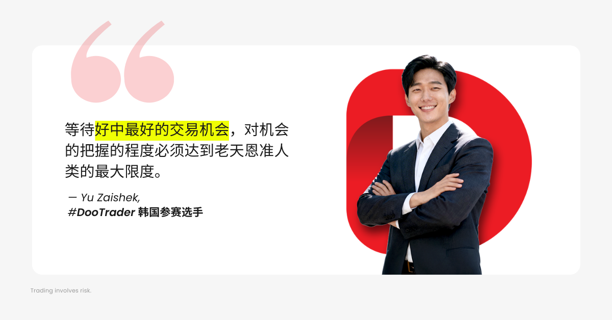 本次 #DooTrader 交易大赛中,韩国选手 Yu Zaishek 是一匹罕见的黑马。他在第六轮破浪组比赛中位居第二,仅次于中国选手 Wei Tengfei。虽然他的收益率只有 Wei Tengfei 的一半,但很少有人注意到,他本月只交易了 6 天!