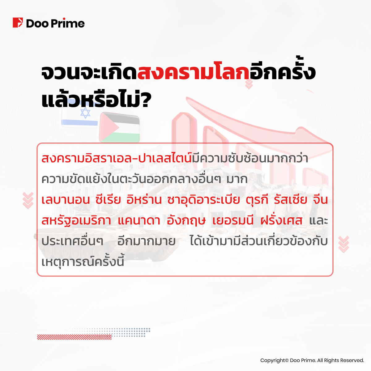 สงครามอิสราเอล-ปาเลสไตน์ที่เกิดขึ้นเมื่อเร็วๆ นี้ได้กลายเป็นจุดสนใจของโลกแล้ว อีกทั้งยังมีความกังวลเพิ่มมากขึ้นว่าสงครามดังกล่าวอาจไม่หยุดอยู่แค่นั้น สิ่งที่ทำให้นักลงทุนและผู้เชี่ยวชาญกังวลคือสงความนี้มีโอกาสกลายเป็นความขัดแย้งที่บานปลายไปสู่สงครามระดับภูมิภาคที่ใหญ่ขึ้น สงครามระหว่างอิสราเอลและปาเลสไตน์ครั้งนี้ไม่ได้เป็นเพียงพาดหัวข่าวหน้าหนึ่งแต่เพียงเท่านั้น แต่เป็นกระแสที่ส่งผลต่อชีวิตประจำวันของเราได้ ความขัดแย้งนี้เป็นสิ่งกำหนดอนาคตของตลาดการเงินและของโลก