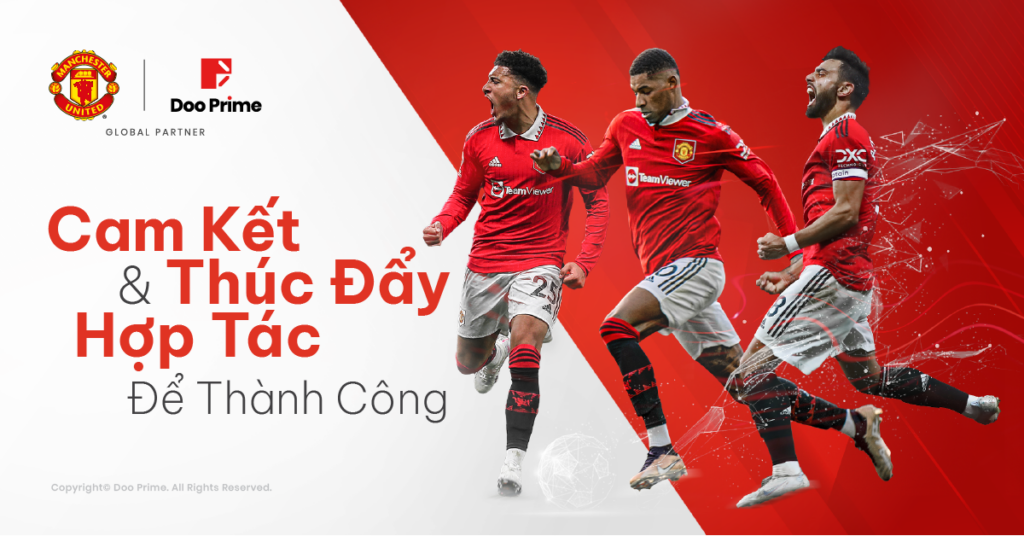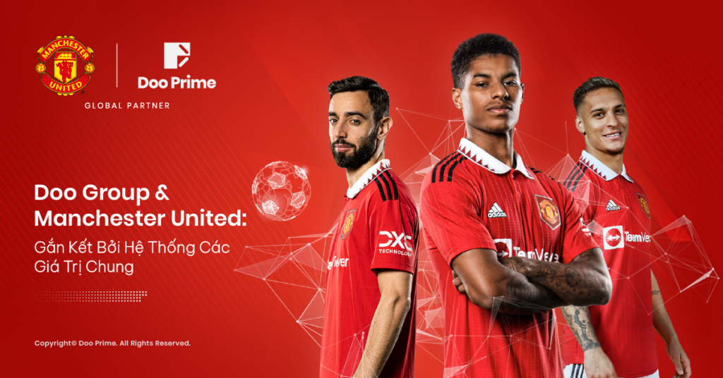 Vào đầu năm 2023, Doo Group và Manchester United đã chính thức thiết lập mối quan hệ đối tác toàn cầu trong nhiều năm. Như vậy, mối quan hệ giữa hai bên đã mang hai lĩnh vực bóng đá và fintech đến gần nhau hơn, từ đó tạo ra vị thế có 1-0-2 giữa cộng đồng giao dịch của chúng tôi và các fans của môn thể thao “vua” từ Manchester United. Riêng đối với chúng tôi, đây là bước tiến mang tầm chiến lược đầu tiên trên phạm vi toàn cầu khi được song hành  với câu lạc bộ (CLB) bóng đá hàng đầu thế giới.