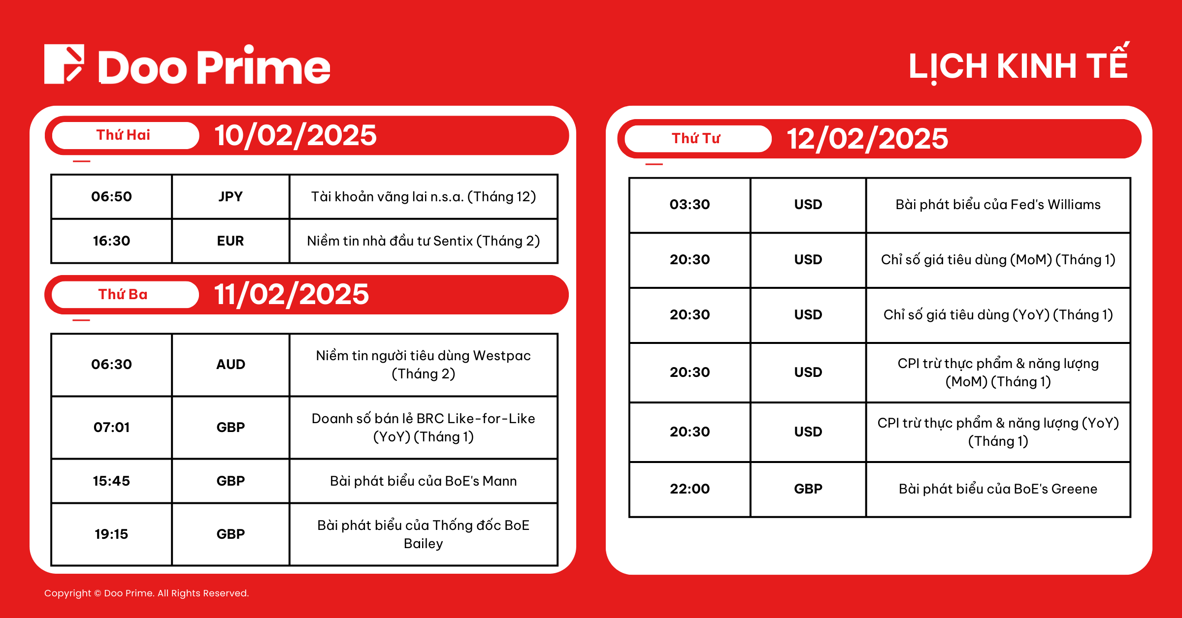 Doo Prime xin thông tin đến bạn những sự kiện kinh tế nổi bật từ 10/02 đến 14/02/2025.